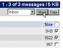 In this case, the first two messages will be Moved to the Inbox. The drop menu allows you to choose any of the folders that are preset, or any that you have created (see Managing Folders to learn how to create and manage e-mail folders).